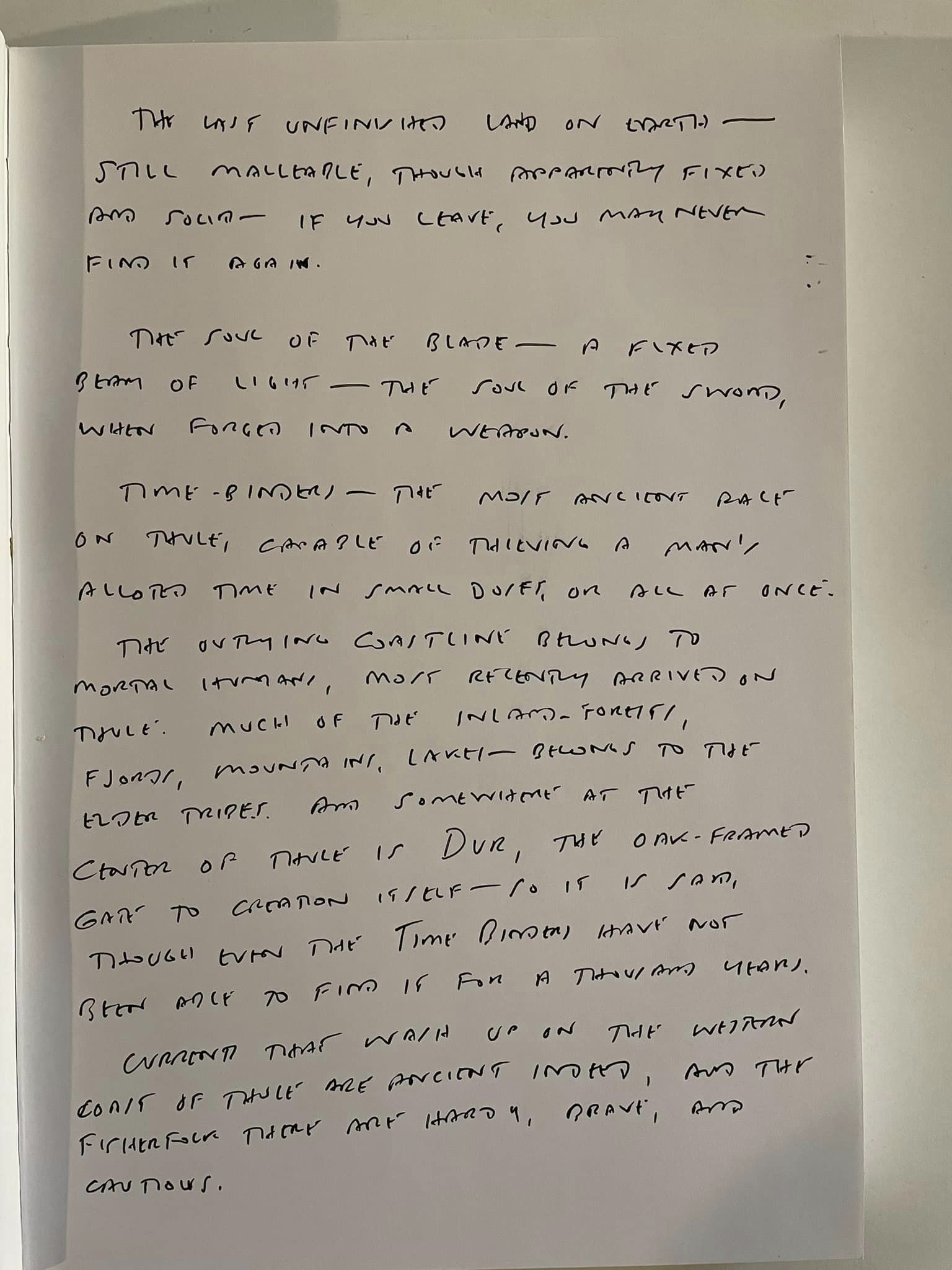Found in the archives, a blank book that Greg used to put down some thoughts relating to what eventually became THE UNFINISHED LAND.