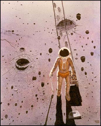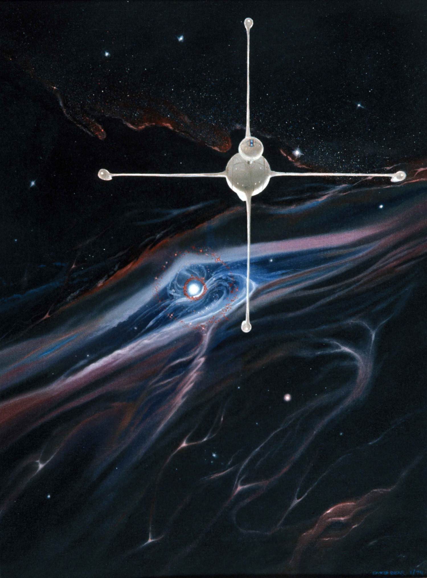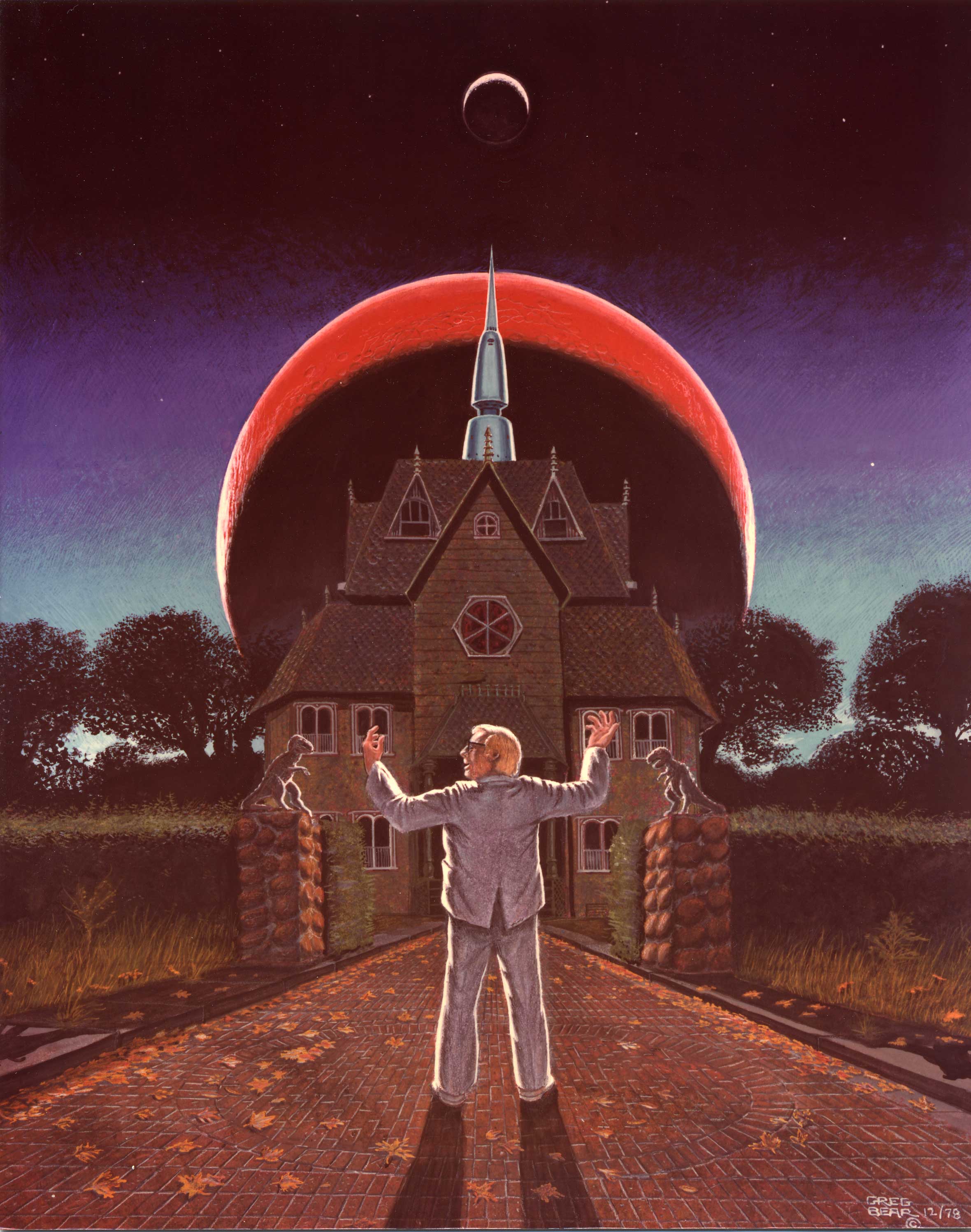 As an illustrator, Greg Bear's artwork has appeared on GALAXY, FANTASY AND SCIENCE FICTION and VERTEX and books both hardcover and paperback. Greg was a founding member of ASFA, the Association of Science Fiction Artists. His last professional work of art was the cover of his own novel, PSYCHLONE, in reprint from Tor. (Click photos to see larger image.)