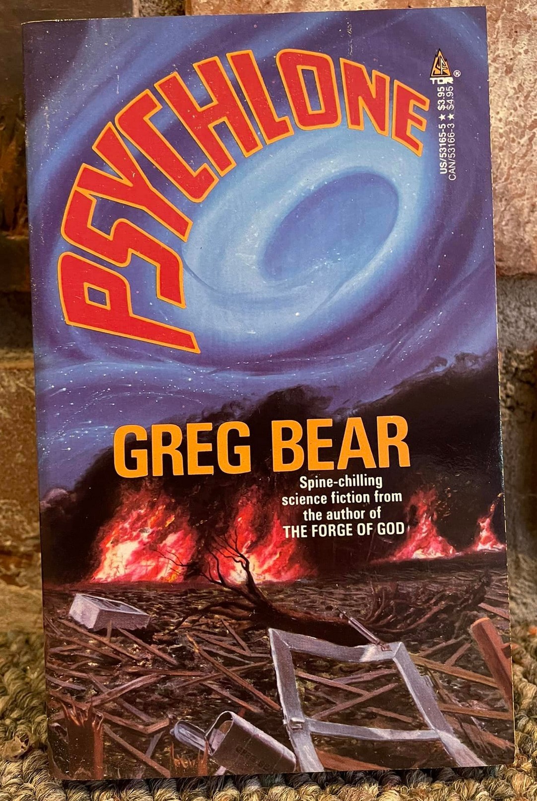 Here’s Greg’s cover art for the 1988 Tor Books reprint of PSYCHLONE. The rough, the final piece, and the printed version.