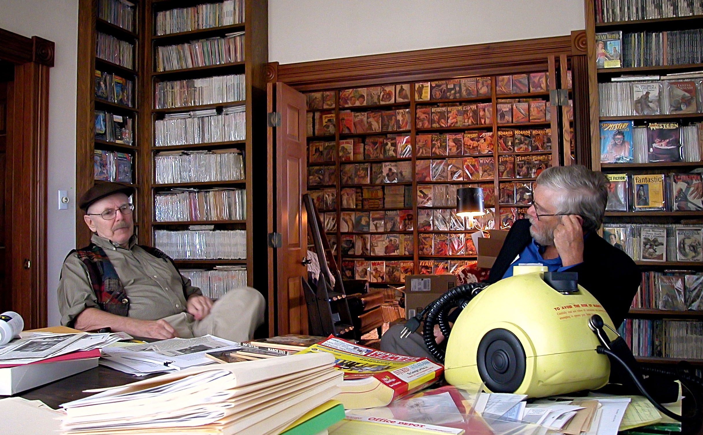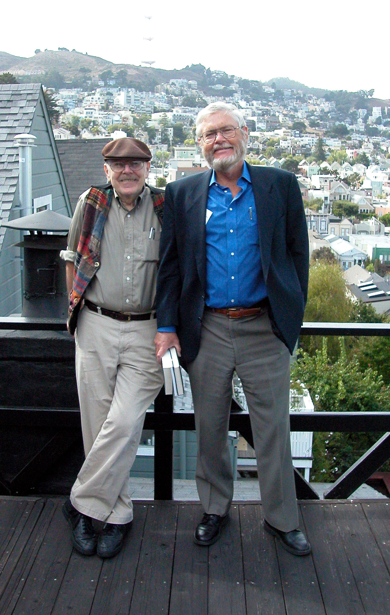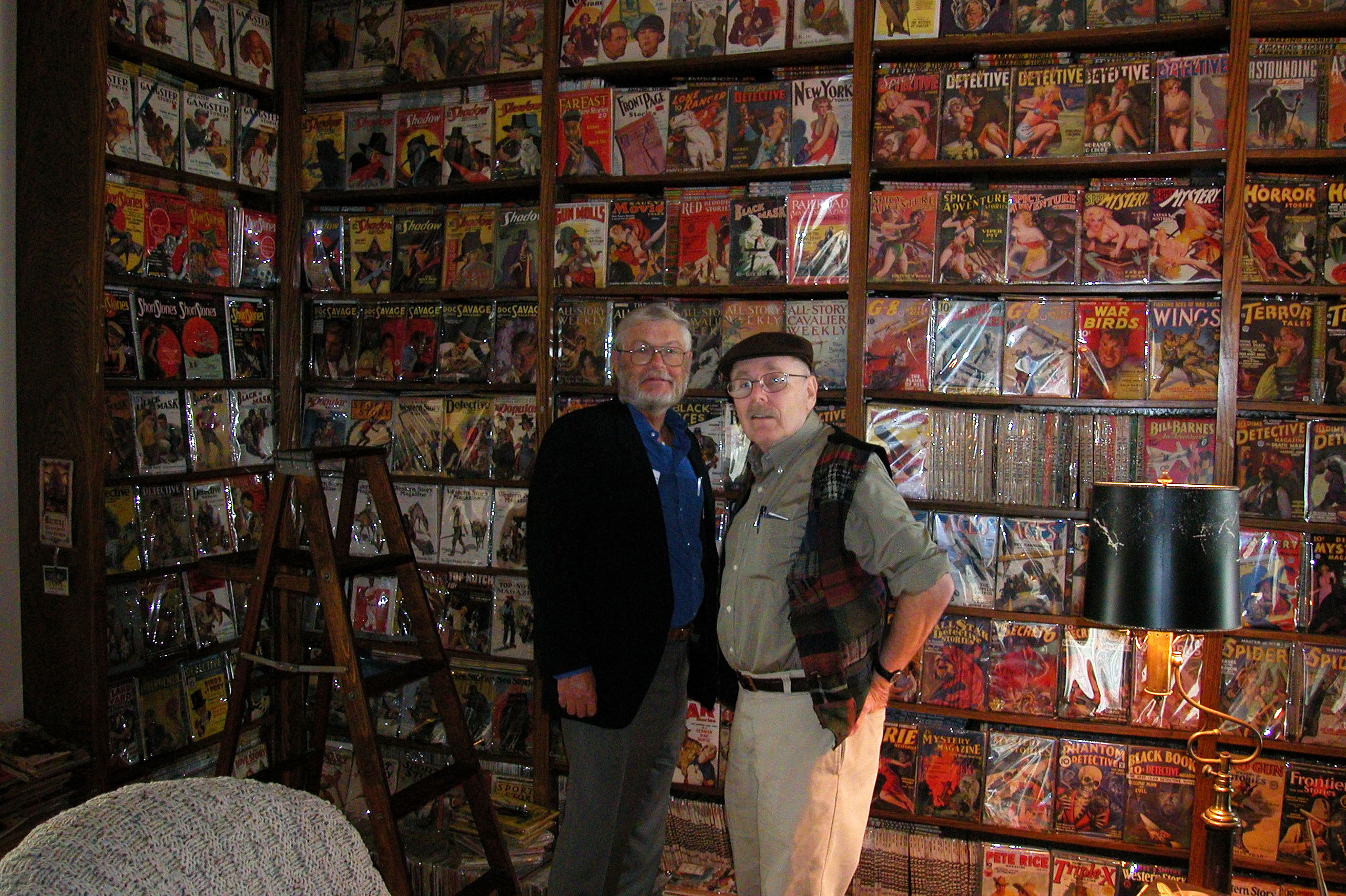 Here’s a call to toast a fine man at the beginning of a new journey. Frank Robinson’s passing reminds me of his many excellent books and films, his influence on San Francisco politics as a speech writer for Harvey Milk, his bestselling work with Tom Scortia--which some would call techno-thrillers, but which both Frank and Tom knew were science fiction--and also of one fine day in his beautiful home. Gregory Benford and I dropped by to chat, go out to lunch, and admire Frank’s legendary collection of pulps. Forthwith, a few good pics from that lovely day.